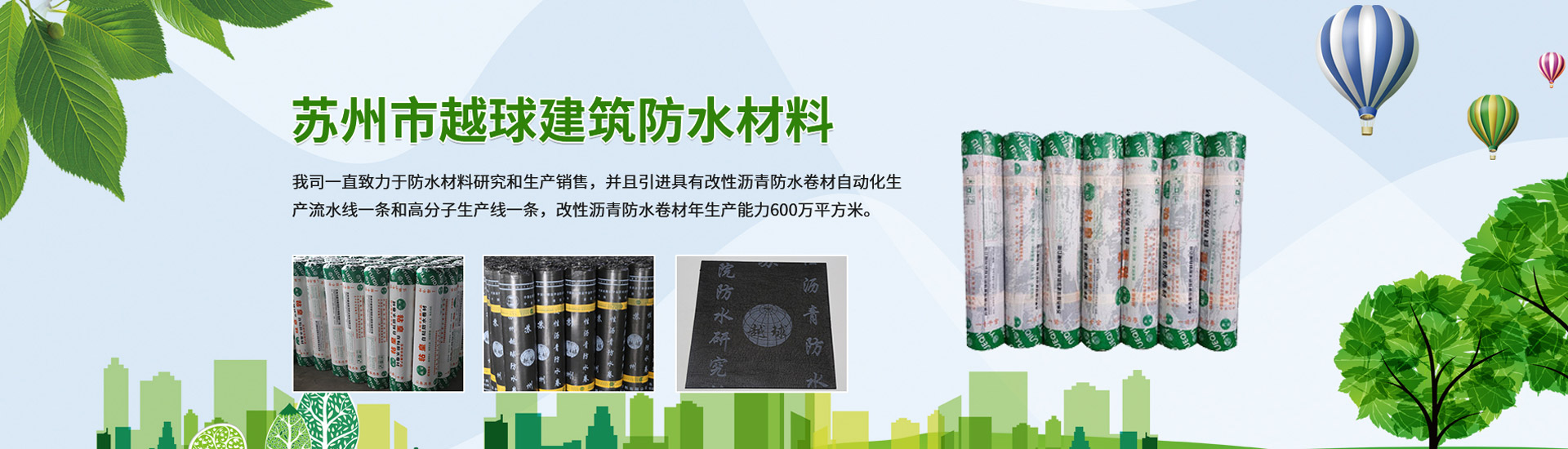 蘇州市越球建筑防水材料有限公司地處蘇州市吳江七都開發(fā)區(qū),近鄰上海郊區(qū),靠近浙江南潯邊上,景色秀麗,氣候宜人,物產(chǎn)豐富,是富饒美麗的江南好地方。本企業(yè)擁有中高級(jí)科研人員多名,技術(shù)力量雄厚,檢測(cè)設(shè)備齊全,是研究開發(fā),生產(chǎn)經(jīng)營(yíng)和施工管理為一體的現(xiàn)代化高科技專業(yè)生產(chǎn)防水材料的企業(yè)。